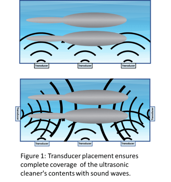 Successful ultrasonic cleaning requires cavitation to remove soils, but it does not act alone. Cleaning solutions are designed to loosen the soil’s hold on surfaces. As cavitation pulls the soils from the surface, some formulations of cleaning solution suspend these soils and prevent them from redepositing on the device.